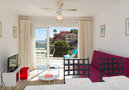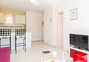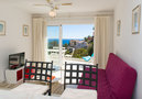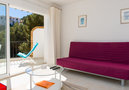 Practical furnishings: living/dining room with satellite TV (flat screen), fan. Exit to the terrace. 1 room with 2 beds (90 cm, length 200 cm), fan. Open kitchen (oven, 4 ceramic glass hob hotplates, kettle, electric coffee machine, Capsules for coffee machine (Tassimo)). Bath/WC. Terrace 13 m2. Terrace furniture. Marvellous panoramic view of the sea. Facilities: washing machine. Please note: fridge without freezer. 1 pet/ dog allowed. TV only FR. This apartment does not have Spanish channels. AT446954