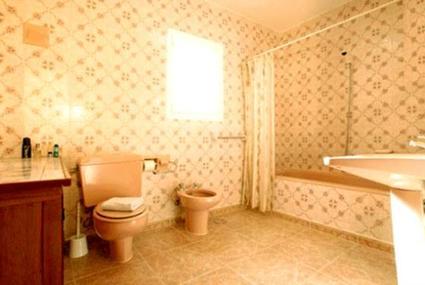 - bathroom with single washbasin, bath with shower, bidet and toilet