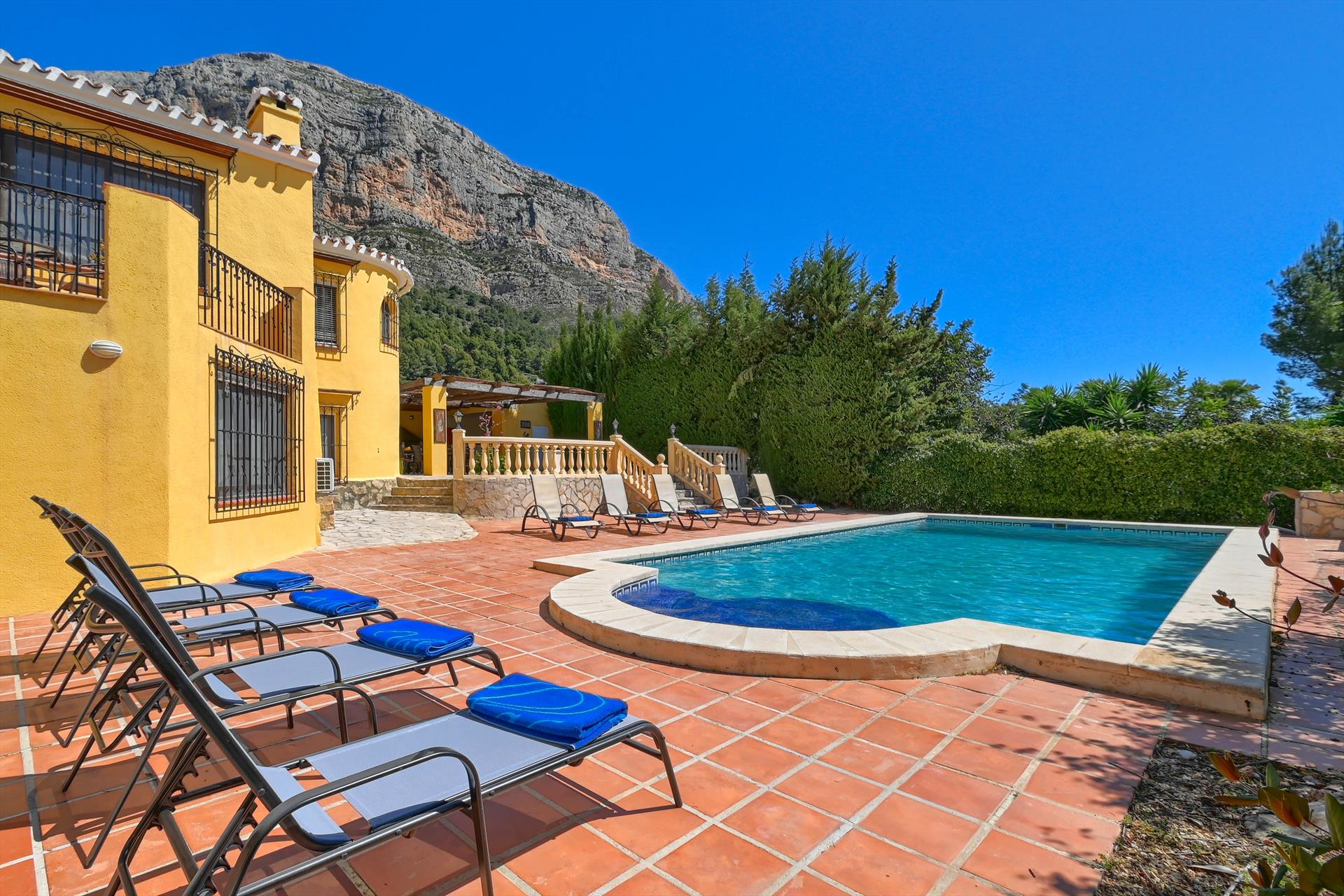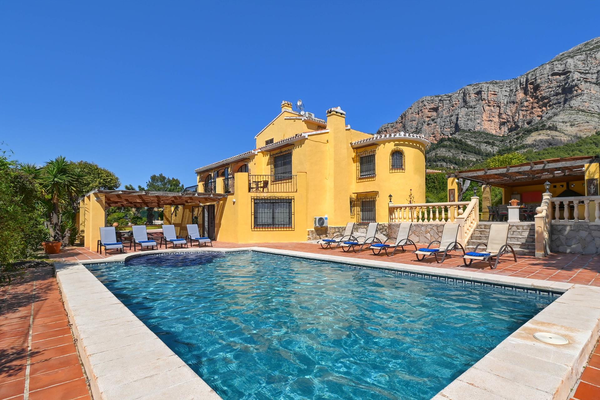 Large and cheerful holiday house with private pool in Javea, Costa Blanca, Spain for 18 persons. The house is situated in a coastal, residential and mountainous area.