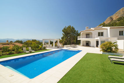 Very modern, beautiful villa "Ava", 2 storeys. In the district of Montgo, in a quiet, sunny position, 9 km from the sea, south facing position. Private: large garden 1'880 m2 (fenced) with lawn and wildlife garden, swimming pool secured (5 x 12 m, depth 1 - depth 200 cm, 01.01.-31.12.) with shutter cover. Outdoor shower. Supermarket 600 m, restaurant 500 m, sandy beach "Arenal" 9 km. Golf course (27 hole) 4 km. Groups of teenagers on request only. Neighbourhood highly sensitive to noise. Quietness and good behaviour expected. Pool with Walk-in-Beach.Availability