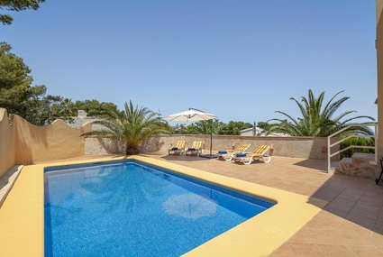 Large and nice villa in Javea, on the Costa Blanca, Spain with private pool for 8 persons. The villa is situated in a coastal and urban area and close to restaurants and bars and a tennis court.