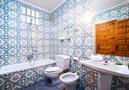 - bathroom with single washbasin, bath/shower combination, bidet and toilet