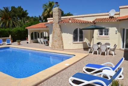 rent villas in javea Casa San Antonio in Jávea, holiday home for 6 persons, set out on 2 floors, has 3 bedrooms (1 with separate entrance), 3 bathrooms, internet, air-conditioning and a private swimming-pool of 10x5 m, surrounded by terrace with 4 sun-beds, garden furniture, outside shower, barbecue and covered terrace with garden furniture. The villa has a surface of 131 m2 on a plot of 969 m2 and is situated in the urbanization Balcon al Mar in Jávea. There is a living-room with 2 couches, arm-chair, TV and access towards covered terrace. And a large kitchen with, air-conditioning, dining table with 6 chairs, ceramic hob, oven, dishwasher, washing-machine, coffee percolator, kettle, microwave, toaster, fridge freezer and access towards terrace and pool. Casa San Antonio has a completely enclosed garden with electric gate. There is ample car-park on the plot. rent villas in javea Some restaurants and small supermarket in the surrounding areas. The distance to the Arenal beach with shops, restaurants and bars is: 6,5 km, to the beach Portichol 3,6km. Smoking, only outside, please. Pets are allowed. rent villas in javea