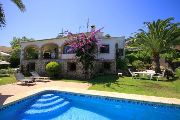 Large and comfortable villa in Javea, on the Costa Blanca, Spain with private pool for 10 persons. The villa is situated in a residential area and at 3 km from El Arenal beach.