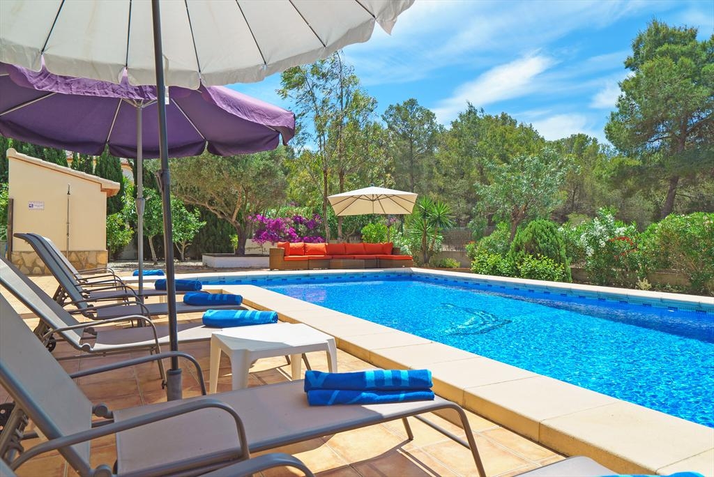 Beautiful and comfortable villa in Javea, on the Costa Blanca, Spain with private pool for 8 persons. The villa is situated in a residential beach area.