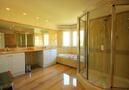 - en-suite bathroom with double washbasin, bath, shower, bidet and toilet