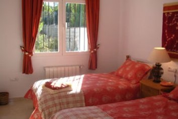 - Bedrooms: Double bedroom with en suite bathroom and doors to rear the terrace, double bedroom with doors to the pool terrace, third room has twin beds. All beds have pocketed sprung. Air conditioning is in each room included. All the rooms have mosquito blinds.