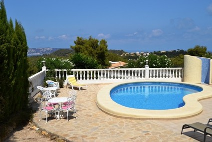 rent villas in javea Casa Cara in Jávea, holiday home for 6 persons, set out on 2 floors, has internet, 3 bedrooms, 3 bathrooms, air-conditoning and a private swimming-pool of 8x4m, surrounded by terrace with garden furniture, 6 sun beds, barbecue, outside shower and covered terrace with garden furnitureAvailability