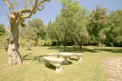 - wonderful lawned garden with gravel, trees and garden furniture with sunbeds