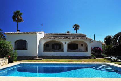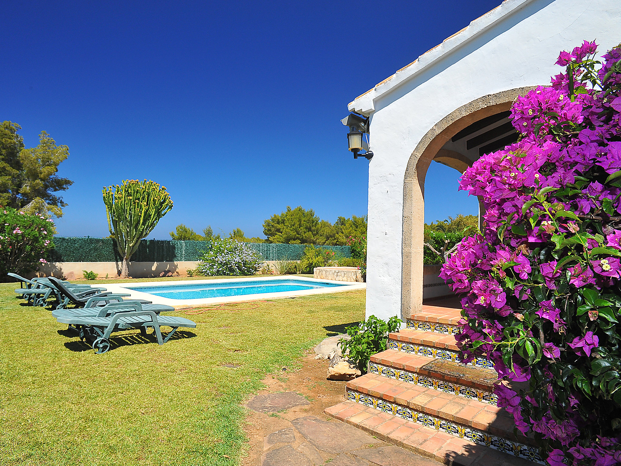 House "Henrys Choza". In the district of Adsubia, in a quiet, sunny position in the residential district, 1.3 km from the sea, in a cul-de-sac. Private: well-kept garden 1'000 m2 (fenced) with lawn and wildlife garden, courtyard, swimming pool (4 x 8 m, seasonal availability: 01.Jan. - 31.Dec.) with internal staircase. Outdoor shower. Shop 1.3 km, supermarket 800 m, restaurant 1.3 km, sandy beach "Arenal" 1.3 km. The owner does not accept any youth groups.Availability