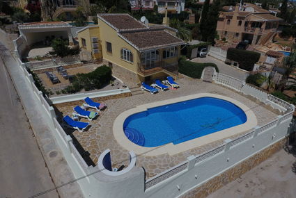 Comfortable house "Grevol", 2 storeys. In the district of Adsubia, in a quiet, sunny position, 2.6 km from the sea. Private: garden 1'000 m2 (fenced) wildlife garden and trees, swimming pool (5 x 11 m, depth 107 - 190 cm, seasonal availability: 01.Jan. - 31.Dec.) with internal staircase. Outdoor shower. In the house: central heating system. Supermarket 2 km, restaurant 2 km, bus stop "Parada Toscamar" 2.2 km, sandy beach "Arenal" 2.6 km. Tennis 2.5 km. Groups of teenagers on request only.Availability