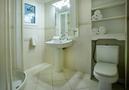 - bathroom with single washbasin, shower and toilet