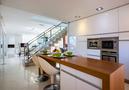 - open kitchen with electric hob, electric oven, microwave, dishwasher, refrigerator-freezer, coffee machine, electric kettle, mixer, toaster and juicer