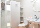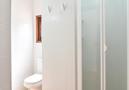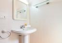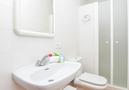 - bathroom with single washbasin, shower and toilet