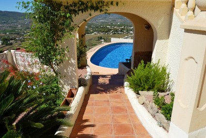 rent villas in javea Casa Mirador in Javea, ground floor villa for 2 persons, has internet connection, 1 bedroom with double bed, 1 bathroom with shower, toilet and wash-hand basin, kitchen with gas cooking plate (3 burners), fridge, oven, coffee percolator, kettle and toaster. The washing-machine is in the garden. rent villas in javea Casa Mirador in Javea has a surface of 50 m2, on a plot of 1.000 m2, has stunning view at the moutains, valleys and sea view (in the distance) and is situated, in the urbanization Montgó Castellans in Jávea. The villa has 2 floors, we have the complete ground floor, garden and the private swimming-pool, of 9x4m, for rent. While the ground floor is rented, the 1st floor will be uninhabited. The distance to the beautiful old town of Jávea is: 3 km, the distance to the sandy Arenal beach with shops, bars and restaurants is 6km. Pets are not allowed. rent villas in javea