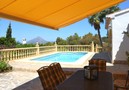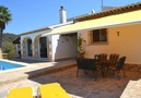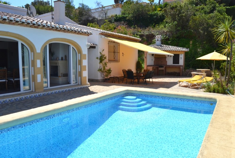 rent villas in javea Casa Bibi for 8 persons, consists of 2 floors, with private swimming-pool of 8x4m with Roman steps. Next to the private swimming-pool is a terrace with garden furniture, 6 sun beds, outside kitchen with sink, boules court, dart board and brick built barbecue and large awning, living/dining-room with 2 couches, flat screen TV, air-conditioning, fireplace, dining table with chairs, extra fridge freezer, DVD Player and doors towards terrace and private pool. The villa has free WIFI. There is an independent kitchen with ceramic cooker, oven, dishwasher, electric kettle, filter coffee machine, microwave, toaster, fridge freezer and table with 2 chairs. rent villas in javea On the 1st floor, are 2 bedrooms and 2 bathrooms, on the ground-floor, with separate entrance, are 2 bedrooms (connected with eachother) and 1 bathroom, the villa is situated in the Urbanization Tosalet III fase in Jávea. The surface of Casa Bibi, is 250m2 on a plot of 1.000m2. From the terrace on the 1st floor is view on the mountain Montgó. The distance to the Arenal beach with restaurants, shops and bars is 4,3km. Pets are allowed.rent villas in javea