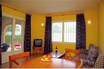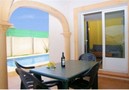 This villa has 2 twin bedrooms, 2 bathrooms, living-dining room with satellite TV, kitchen fully equiped, washing-machine, dish-washer, and air-conditioning. The villa has been tastefully furnished and decorated with coloured walls, making it still more attractive. On the exterior, you will find a small covered terrace, garden furniture, portable barbecue, private swimming pool with sun-loungers and a small garden too.