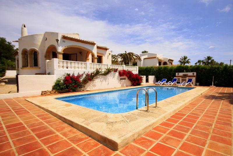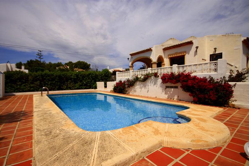 Beautiful and comfortable villa with private pool in Javea, on the Costa Blanca, Spain for 8 persons. The villa is situated in a residential area and at 3 km from El Arenal beach.