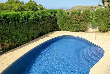 House "Ayora". In the district of Adsubia 5 km from the centre of Jávea, 3.5 km from the centre of Jávea-Arenal, 85 km from the centre of Alicante, on a slope, 3.5 km from the sea. Private: property 500 m2 (fenced) with wildlife garden and trees, swimming pool (6 x 3 m, depth 120 - 180 cm, seasonal availability: 01.Jan. - 31.Dec.). Stepped path to the house. Parking (for 2 cars) on the premises. Shop 3.5 km, sandy beach 3.5 km.Availability