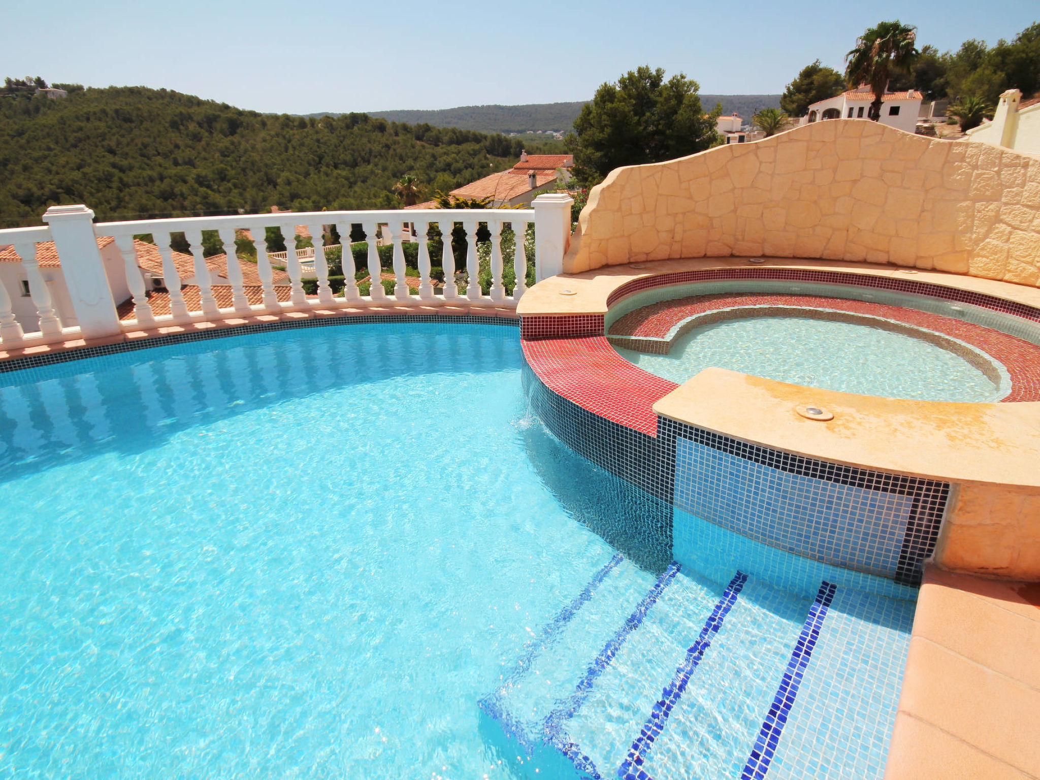 Single-family house "Tosalet". 2.5 km from the centre of Jávea-Arenal, on a slope, 1.5 km from the sea. Private: property 1'000 m2, terraced garden with wildlife garden, swimming pool (9 x 4 m, seasonal availability: 01.Jan.-31.Dec.). Paddling pool, outdoor shower, parking on the premises. Shop 1.5 km, restaurant 1.5 km, sandy beach 3 km pebble beach "Granadella" 9 km.