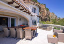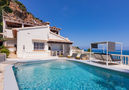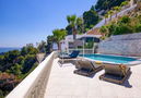 Spacious and bright, very beautiful and luxurious furnishings: living/dining room with dining table, satellite TV, air conditioning and forced-air heating. Exit to the terrace, pergola, to the swimming pool. 1 room with 1 french bed (180 cm, length 200 cm), shower/bidet/WC, double hand-basin, satellite TV, air conditioning and forced-air heating. 1 room with 1 french bed (160 cm, length 190 cm), shower/WC, air conditioning and forced-air heating. Large, open kitchen (5 hot plates, oven, dishwasher, toaster, kettle, microwave, freezer, electric coffee machine). Sep. WC. On the lower ground floor: large kitchen-/living room (oven, dishwasher, 4 ceramic glass hob hotplates, microwave, freezer) with dining table. Upper floor: 1 room with 1 french bed (160 cm, length 190 cm), shower/WC, air conditioning and forced-air heating. Exit to the terrace. 1 room with 1 french bed (160 cm, length 190 cm), shower/WC, air conditioning and forced-air heating. 1 room with 1 french bed (160 cm, length 190 cm), shower/WC, air conditioning and forced-air heating. Exit to the terrace. 1 room with 1 french bed (160 cm, length 190 cm), shower/bidet/WC. 1 room with 1 french bed (160 cm, length 190 cm), shower/bidet/WC, air conditioning and forced-air heating. Large terrace. Terrace furniture, balcony furniture, barbecue, deck chairs, covered balcony. Marvellous panoramic view of the sea and the mountains. Facilities: washing machine, dryer, iron, hair dryer. Internet (WiFi, free). Please note: TV only NL, EN. R000000001