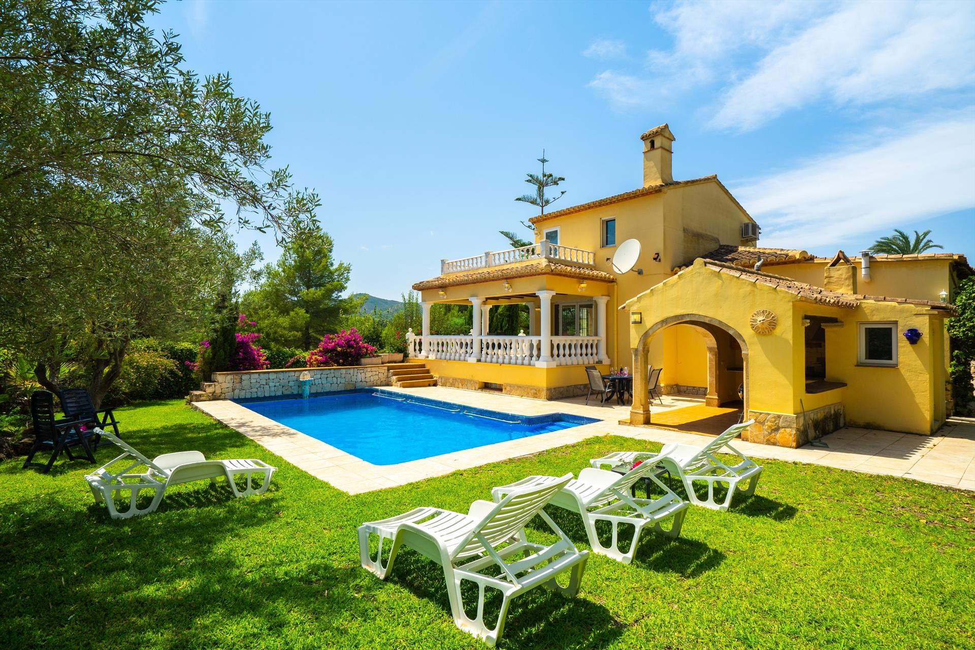 Large and cheerful villa in Javea, Costa Blanca, Spain with private pool for 8 persons. The house is situated in a residential beach area and at 4 km from El Arenal, Javea beach.
