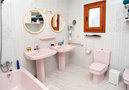 Single-family house "Roget", 2 storeys. In the district of Costa Nova, on a slope, 6 km from the sea. Private: terraced garden (fenced) with wildlife garden and trees, swimming pool (5 x 10 m, 01.01.-31.12.) with internal staircase. In the house: central heating system. Stepped path (16 steps) to the house. Supermarket 3 km, restaurant 1 km, sandy beach "Arenal" 6 km. Groups of teenagers on request only.