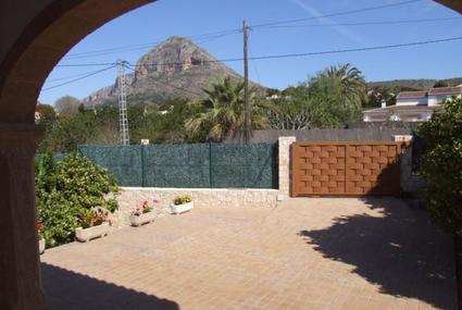 rent villas in javea Casa Ana in Jávea, holiday home for 6 persons, set out on 1 floor, has internet, 3 bedrooms, 2 bathrooms, 1 guest-toilet and a private swimming-pool of 10x5 meter, surrounded by terrace with 6 sunbeds and barbecue. There is also a large covered terrace with garden furniture. Casa Ana in Jávea has a surface of 220 m2 on a plot of 1.500 m2 and is situated in the urbanization Carrasca in Jávea. rent villas in javea Casa Ana has beautiful view on the mountain Montgó. The villas has a living/dining-room with 2 couches, flatscreen TV, radio/CD Player, fireplace, dining table with 6 chairs, ventilator, shutters for the windows and sliding doors towards covered terrace with garden furniture. And an independent kitchen with ceramic hob, oven, dishwasher, microwave, toaster, kettle, coffee percolator, table with 4 chairs and fridge freezer. Next to the kitchen is an utility-room with sink and washing-machine. Some restaurants in the surounding areas. The distance to the sandy Arenal beach, with shops, restaurant and bars is 6 kilometer, to the old town of Jávea 1 kilometer. Pets are not allowed. rent villas in javea