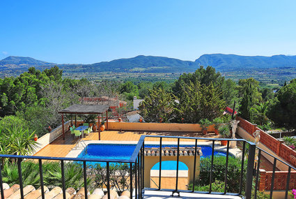 Comfortable villa "Tina", renovated in 2015. In the district of Montgo, 9 km from the sea. Private: well-kept terraced garden, 3'000 m2 (fenced) with wildlife garden and trees, swimming pool (5 x 10 m, 01.01.-31.12.) with internal staircase. Outdoor shower. In the house: central heating system. Supermarket 800 m, restaurant 700 m, sandy beach "Arenal" 9 km. Groups of teenagers on request only. Neighbourhood highly sensitive to noise. Quietness and good behaviour expected.