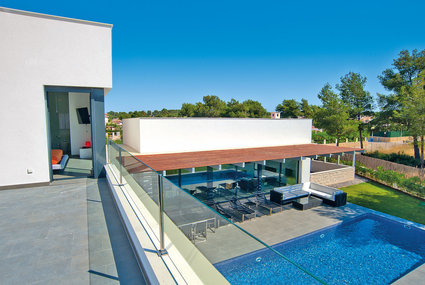Modern villa "Ernesto", 2 storeys, built in 2012. In the district of Costa Nova, in a quiet, sunny position in the residential district, 4 km from the sea. Private: beautiful garden 1'000 m2 (fenced) with lawn and wildlife garden, swimming pool (3 x 11 m, 01.01.-31.12.) with internal staircase. Outdoor shower. Supermarket 1 km, restaurant 800 m, sandy beach "Arenal" 4 km, shingle beach "Granadella" 4 km.Availability