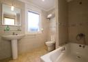 - en-suite bathroom with single washbasin, bath/shower combination and toilet