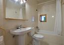 - en-suite bathroom with double washbasin, bath/shower combination and toilet