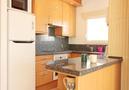 - open kitchen with electric hob, electric oven, microwave, dishwasher, refrigerator-freezer, coffee machine, electric kettle, mixer and toaster