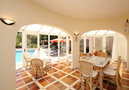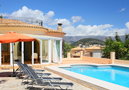 La Nucia 10 km from Benidorm: Large, comfortable house "Eole", surrounded by trees. Outside the resort, 2 km from the centre of La Nucia, in a quiet, sunny position, 10 km from the sea, 10 km from the beach. Private: natural state property 1'000 m2 (fenced), terraced garden, swimming pool angular (5 x 9 m, depth 140 - 200 cm, 01.01.-31.12.) with internal staircase. Outdoor shower, patio (40 m2), arbour, garden furniture, barbecue, parking (for 3 cars) at the house on the premises. Supermarket 2 km, restaurant, bar 30 m, bus stop "La Nucia" 300 m, sandy beach "Benidorm" 10 km, shingle beach "El Albir" 8 km. Golf course (18 hole) 10 km. Nearby attractions: Terra Mitica 10 km, Terra Natura 10 km, Aqualandia 10 km, Mundomar 10 km, Altea 10 km, Alicante 48 km. Please note: car recommended.Availability
