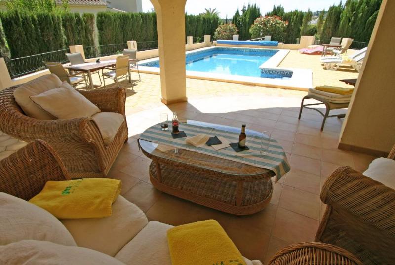 Wonderful and comfortable villa with private pool in Moraira, on the Costa Blanca, Spain for 8 persons. The villa is situated in a residential area and at 1 km from Moraira beach.