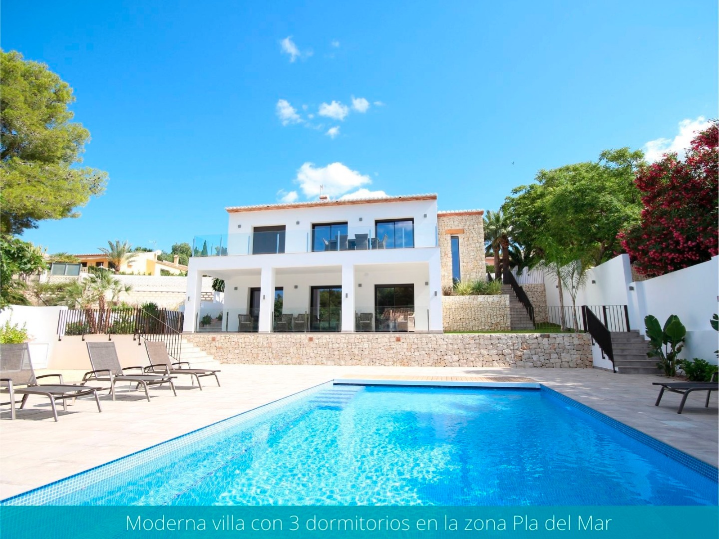 The villa features three spacious bedrooms, each with its own en-suite bathroom.
