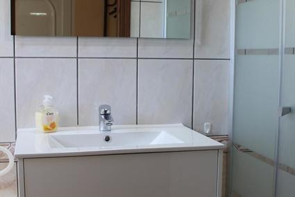 - 2 bathrooms, each with single washbasin and shower