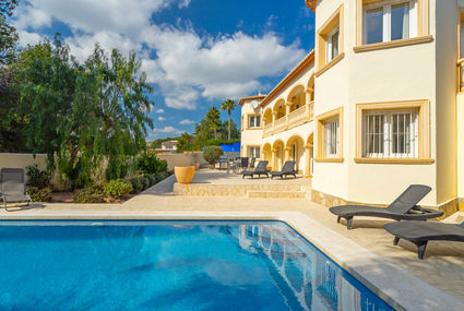 Large house "Castellon", 2 storeys. 2 km from the centre of Moraira, in a secluded, quiet, sunny position, 2 km from the sea, 2 km from the beach, in a cul-de-sac. Private: property 600 m2, garden with lawn, swimming pool angular (4 x 8 m, 01.01.-31.12.). WC in the pool area, outdoor shower. In the house: internet access, washing machine. Parking (for 2 cars). Shop 2 km, supermarket 1 km, restaurant 150 m, bar 100 m, bakery 300 m, sandy beach "L'Ampolla Moraira" 2 km. Marina 2.2 km, tennis 140 m. Please note: suitable for families.Availability