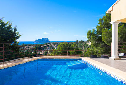 Modern, beautiful villa "Saralisa", 2 storeys. 3.8 km from the centre of Moraira, in a quiet, sunny position on a slope, residential area (villas), 2.3 km from the sea, 2.3 km from the beach. Private: property 1'000 m2 (fenced), swimming pool (8 x 4 m, 01.01.-31.12.) with internal staircase. Unconventional pool shape. Outdoor shower. In the house: air conditioning. Shop 2.2 km, supermarket 2.2 km, restaurant 1.5 km, sandy beach "L'Ampolla" 3.8 km, shingle beach "Cala Andrago" 2.3 km. Golf course (9 hole) 1.5 km. Please note: car recommended. Suitable for families. Groups of teenagers on request only.Availability