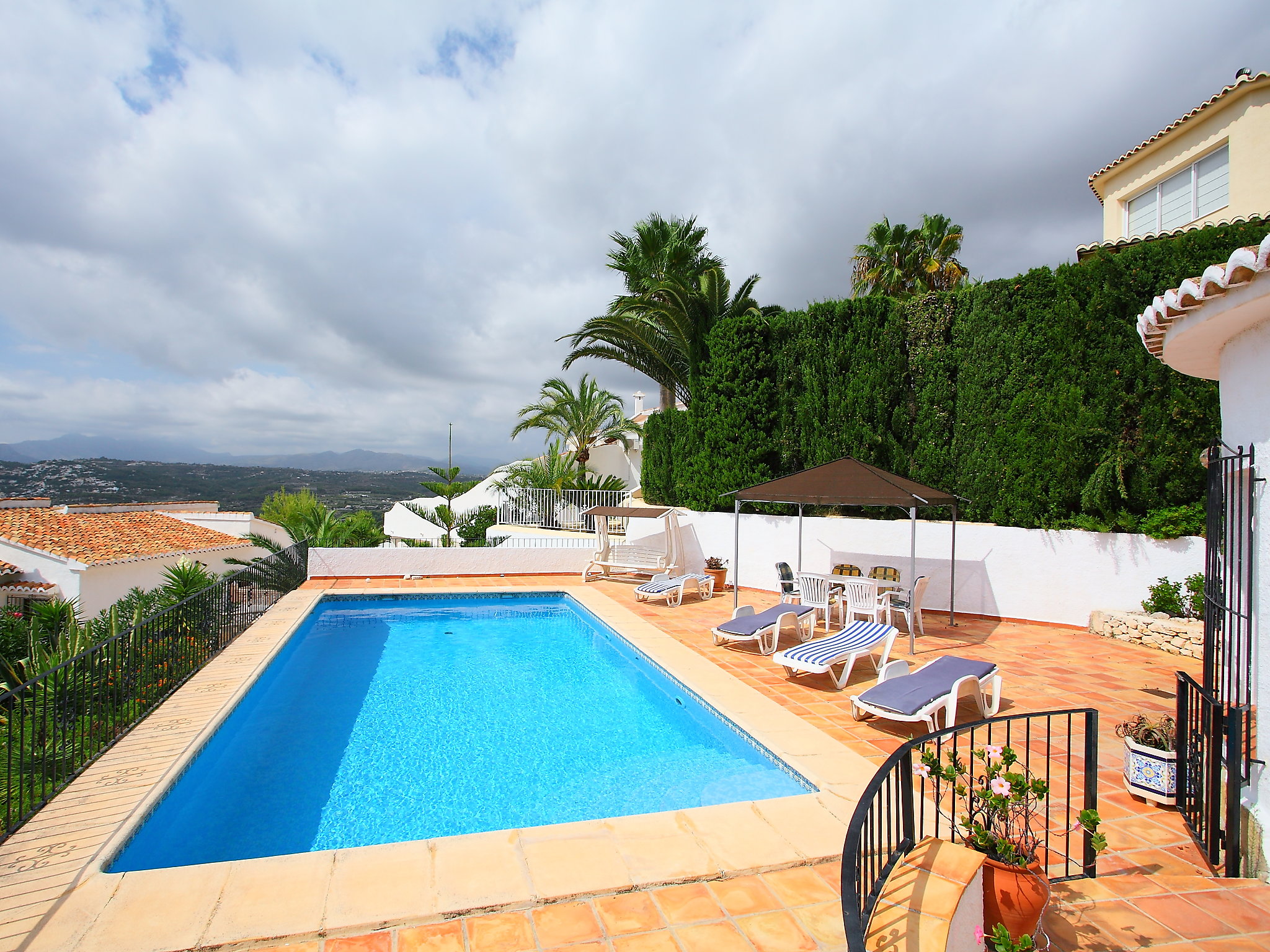 Valle del Portet: Beautiful, cosy single-family house "Valle del Portet". 2 km from the centre of Benitatxell, 4 km from the centre of Moraira, in a sunny, elevated position on a slope, 2.5 km from the sea, 2.5 km from the beach. Private: property 980 m2, swimming pool angular, fenced (8 x 4 m, 01.01.-31.12.) with internal staircase. Terrace, garden furniture, barbecue. In the house: central heating system. Stepped path to the house. Shop 2 km, supermarket 2 km, restaurant 1 km, bar 2 km, sandy beach 4.5 km pebble beach 2.5 km. Golf course 8.5 km.Availability
