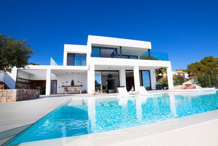 Moravit 3 km from Moraira: Very modern villa "Saona", 2 storeys, built in 2018. On the outskirts, 3 km from the centre of Moraira, in the district Moravit, in a quiet, sunny position residential area (villas), 750 m from the sea, 950 m from the beach. Private: property 1'100 m2 (fenced), beautiful terraced garden, swimming pool angular (5 x 9 m, depth 30 - 140 cm, 01.01.-31.12.) with internal staircase. Outdoor shower, terrace, garden furniture, fireplace. Heating to be paid on the spot (01.11.-30.04.), heating available only from 01.11. to 30.04.. Stepped path (4 steps) to the house. Parking (limited number of spaces). Shop 1.1 km, grocery 1.1 km, supermarket 1.1 km, shopping centre 1.1 km, bakery 1.1 km, café 1.1 km, pub garden 1.1 km, sandy beach "Moraria" 2.1 km, rocky beach "Cala L'Andrago", swimming bay 950 m. Sports harbour 2.9 km, marina 2.9 km, golf course (18 hole) 1.4 km, surf school 2.9 km, sailing school 2.9 km.Availability