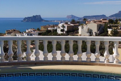 Cumbre del Sol: Very beautiful, comfortable house "Ingrid". 6 km from the centre of Moraira, in a quiet, sunny position, 1.3 km from the sea, 1.3 km from the beach. Private: property 1'000 m2, beautiful, well-kept garden, swimming pool kidney shaped (4 x 8 m, depth 150 - 200 cm, seasonal availability: 01.Jan. - 31.Dec.) with internal staircase. Outdoor shower, barbecue. In the house: central heating system. Parking on the premises. Supermarket 2.4 km, restaurant 2.4 km, bar 2.4 km, sandy beach 6 km pebble beach 2.4 km. Please note: car recommended. Suitable for families, suitable for seniors.Availability