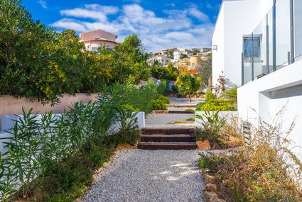 Cumbre del Sol: Very modern, beautiful villa "Lirios", built in 2019. In the resort 6.5 km from the centre of Moraira, in a quiet, sunny, elevated position residential area (villas), traffic calmed area, 2 km from the sea, 2 km from the beach. Private: property 802 m2 (fenced), beautiful, well-kept garden (fenced), swimming pool (8 x 4 m, seasonal availability: 01.Jan. - 31.Dec.). Outdoor shower, terrace, barbecue. Grocery 3 km, supermarket 3 km, restaurant 2.9 km, bus stop "Benitachell" 4.9 km, railway station "Teulada" 8.7 km, ferry "Denia" 23 km, sandy beach "Playa Moraira" 7.7 km, rocky beach "Cala Moraig" 1.9 km. Sports harbour 7.1 km, marina 7.1 km, golf course (18 hole) 9.7 km. Nearby attractions: Aqualandia, Mundomar, Terra Mítica, Terra Natura, Benidorm Palace (Benidorm), Les Fonts de l'Algar, Castillo de Guadalest. Please note: suitable for families. Object suitable for 6 adults + 1 child. The owner does not accept any youth groups.Availability