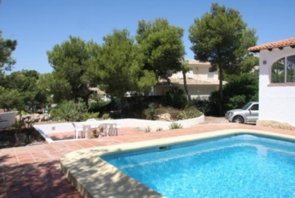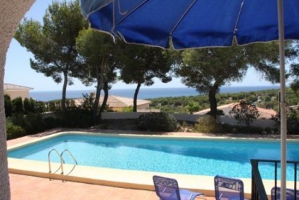 Villa holiday rental for up to 8 people. Villa in Moraira with good sea views, the mountains and the garden. Located in a quiet area and close to shops and restaurants, consists of 130m2 built. lounge with TV and fireplace Exclusively spanish TV. Other channels or satellite TV on request. Check Rates in extras. separate dinningroom kitchen with microwave and washing machine 3 bedrooms with two beds each inependents. bedroom with double bed Electric radiators 2 full bathrooms Bbq built covered terrace Pool 5x10 partially fenced plot of 800m2 2 open parking spot on the land.