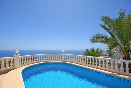 Pleasent summervilla with fantastic seaviews between Moraira and Benitachell, for 8 people. This villa is situated in the area Cumbre del Sol, quiet and sunny zone. The plot has approx. 970 m² with pool, barbecue and terrace.