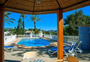 Very large, cosy villa "Villa el Pinar", 2 storeys. In the district of Moraira, 600 m from the centre, in a quiet, sunny position. Private: large, beautiful, well-kept garden 1'700 m2 (fenced) with lawn and trees, swimming pool angular (5 x 10 m, 01.01.-31.12.) with internal staircase. Outdoor shower. In the house: central heating system (extra). Roofed, parking on the premises. Shop 600 m, supermarket 1 km, restaurant, bar 150 m, sandy beach 400 m. Golf course 2.5 km.