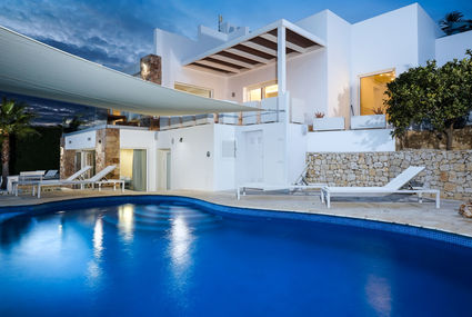 Large, very comfortable, luxurious villa "La Palmera", 2 storeys, renovated in 2018. In the district of Benimeit 4 km from the centre of Moraira, in a quiet, sunny position on a slope, 4 km from the sea, 4 km from the beach. Private: large, beautiful, well-kept garden 1'000 m2 (fenced), swimming pool kidney shaped (9 x 4 m, 01.01.-31.12.) with internal staircase. Outdoor shower, terrace, garden furniture, barbecue, barbecue house. In the house: air conditioning. Parking on the premises. Shop 2 km, supermarket 2 km, restaurant 2 km, bar 2 km, sandy beach "Playa L'Ampolla" 4 km. Golf course (9 hole) 3.5 km. Please note: car recommended. Suitable for families. Object suitable for 8 adults + 2 children groups of teenagers on request only.Availability