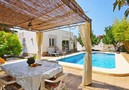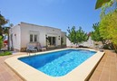 This villa is situated in a very quiet area 5 minuts by car to the beach La Ampolla and the town centre of Moraira. This villa has a plot with trees and lots of space to take a sunbath at the pool area. There is also a pergola for to have breakfast, lunch and dinner. This villa is arranged on one floor and has a living area of 90 m². The plot is completely enclosed and has 700 m² with a parking for 2-3 cars on the same plot. Internal: large living-dining room with Sat-TV/TDT and confortable sofas. Open and completely equipped kitchen with gas cooker, oven, microwave, refrigerator with freezer, washing machine, coffee maker and other utensils for the kitchen. 1 large bedroom with double bed and bathroom en suite with shower, washbasin and wc. 1 bedroom with 2 single beds. 1 bathroom with shower, washbasin and wc. 1 bedroom with 2 single beds. External: pool of 8x4m with built-in stairs and metallic stairs. Lots of space to take a sunbath in the loungers (6 sun-loungers), portable barbecue. Only 800m to the shopping centre and the supermarket, 2,5 km to the town centre of Moraira and the beach La Ampolla and the promenade.Groups of young people are allowed in this villa