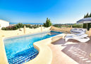 Monte Pego 17 km from Dénia: Very beautiful, cosy, comfortable house "Susi", 2 storeys. In the district of Monte Almúnia, in a quiet, sunny position on top of a hill, residential area (villas), area with little traffic, 10 km from the sea. Private: natural state property, swimming pool angular (depth 90 - 180 cm, 01.01.-31.12.). Outdoor shower, terrace, garden furniture, barbecue, parking on the premises. Shop 5 km, supermarket 5 km, shopping centre 15 km, restaurant 5 km, bar 5 km, sandy beach 10 km. Golf course (18 hole) 15 km, tennis 5 km. The owner does not accept any youth groups.Availability