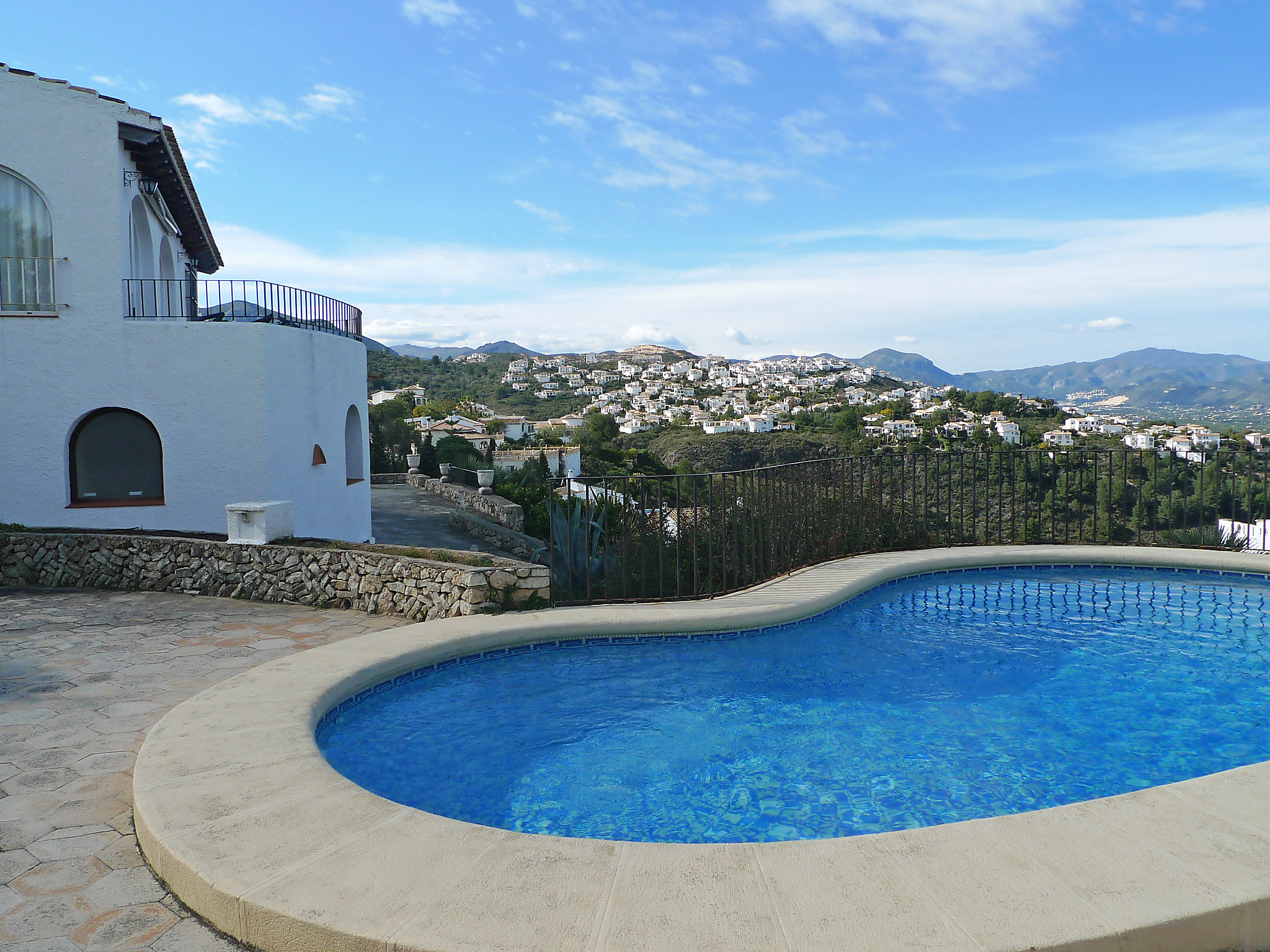 Very simple, comfortable house "Villa Teresa". In the district of Monte Pego, in a quiet, sunny position, 8 km from the sea, in a cul-de-sac. Private: property 1'000 m2, natural garden, swimming pool kidney shaped (4 x 8 m, depth 80 - 160 cm, seasonal availability: 01.Jan.-31.Dec.). Steep motor access. Parking on the premises. Shop 5 km, supermarket 5 km, shopping centre 5 km, restaurant 500 m, sandy beach 8 km. Golf course 12 km, tennis 500 m. The owner does not accept any youth groups.Availability